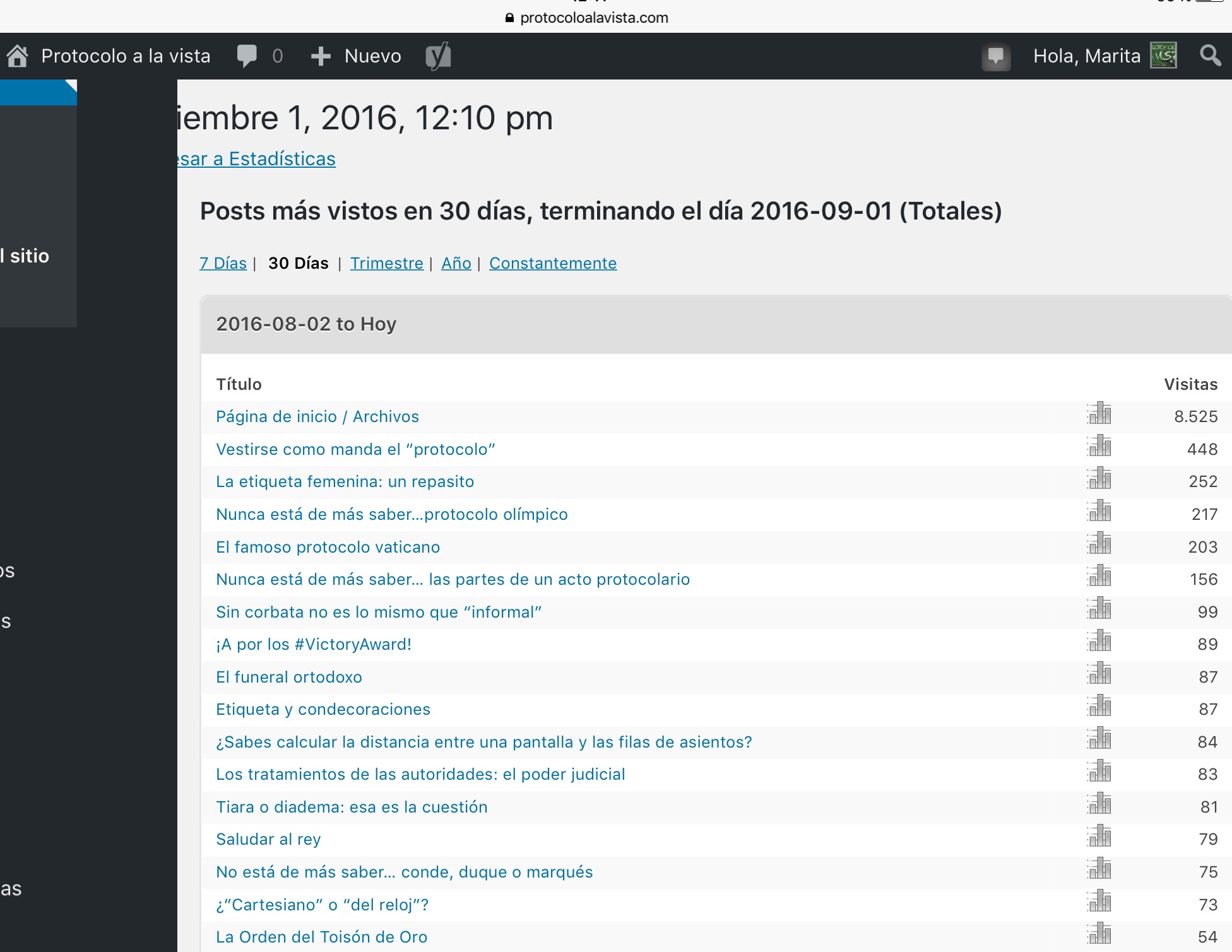 Estos son las cifras y las 16 entradas que más veces se han visto durante el mes de agosto: hay de todo -como en botica- y eso nos gusta. El protocolo es mucho más que saber acertar con la etiqueta, o saber que la merluza se come con pala de pescado. Es ceremonial, es comunicación, es una estupenda herramienta de trabajo y nuestros seguidores lo tienen más que que claro. ¡Qué bueno!