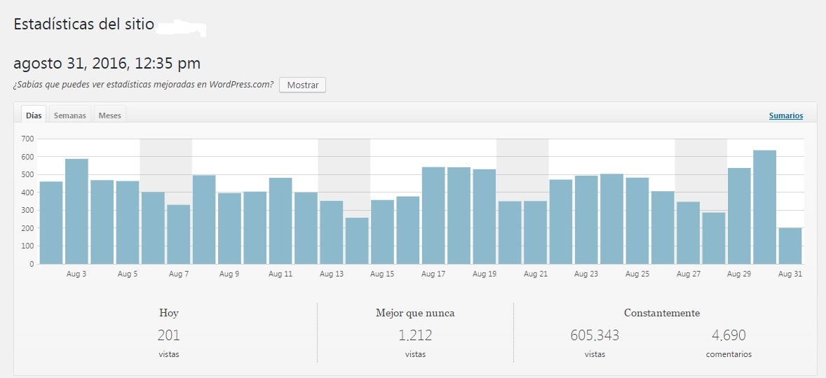 La migración de contenidos, datos, seguidores y estadísticas se ha llevado a cabo durante el mes de agosto y se completó el día 31: en la web anidan ya las 605.343 visitas que teníamos acumuladas en el minuto final. Por tanto no deberíamos tener problemas a partir de hoy, que volvemos a ponernos en marcha, pero si echáis de menos algo, no tenéis más que decirlo. ¡A ver cómo se nos da la web!