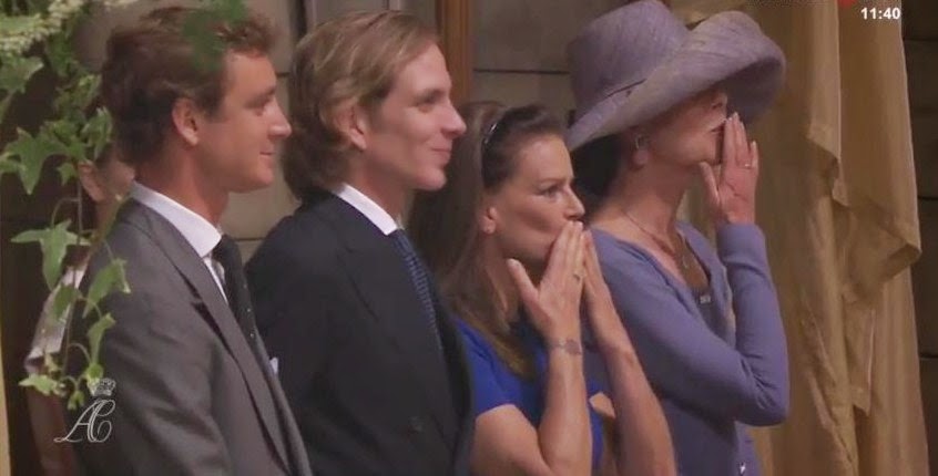 Sobre las 10:20 de la mañana hacían su llegada S.A.R. la Princesa Carolina y sus hijos, seguida pocos instantes después de S.A.S. la Princesa Estefanía, también acompañada de su progenie. Mientras que la primogénita de Rainiero y Gracia llevaba pamela y traje corto, su hermana menor optó por un vestido quizá demasiado juvenil y veraniego, dadas las circunstancias. Por precedencia, se sentaron la Princesa Carolina, la Princesa Estefanía, Andrea Casiraghi y Pierre Casiraghi. En segunda fila, por orden de sucesión al trono monegasco, S.A.R. la Princesa Alejandra de Hannover y sus primos hermanos los hijos de Estefanía: Louis y Pauline Ducruet y Camille Gottlieb.