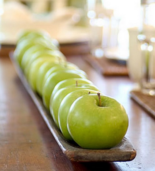 -Si se ponen frutas en la decoración, se debería colocarlas intercaladas con hojas verdes en recipientes, platos o piezas depositados sobre la mesa;
