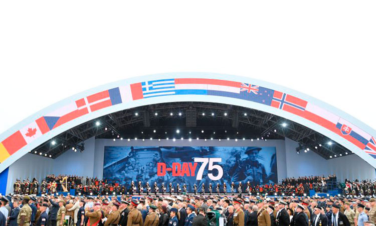 El lugar elegido para la ceremonia fue la gran explanada del Southsea Common de la ciudad británica de Portsmouth, uno de los puntos de embarque de los soldados aquel día. Para enmarcar el acto se montó un enorme escenario bajo una cubierta en forma de arco en el que figuraban las banderas de los 15 países que participaron en la operación: