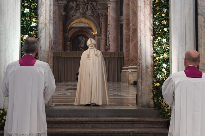 La ceremonia se inició en la Plaza de San Pedro a las 10 de la mañana con la llegada de la procesión que acompañaba al Papa hasta la Puerta Santa. Ante ella, se arrodilló, oró, se acercó a ella y tras unos momentos de recogimiento, la cerró.