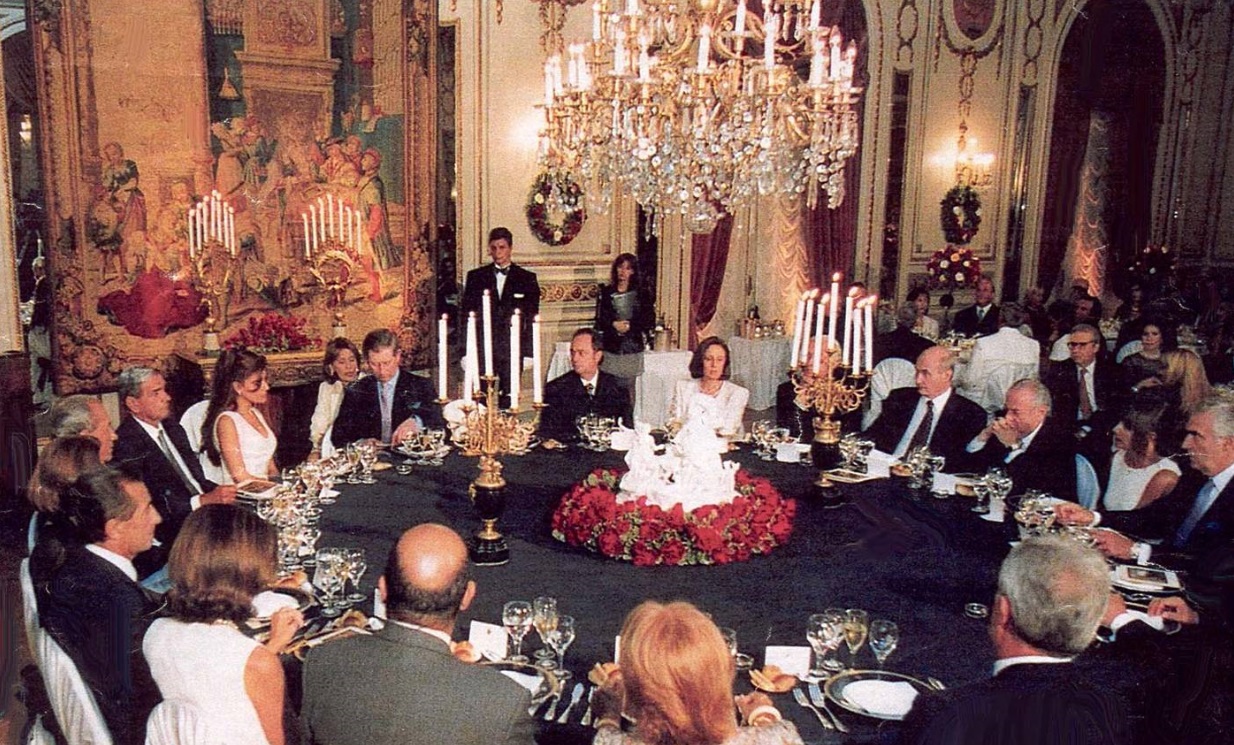 Cena de gala: la intérprete está sentada detrás del Príncipe Carlos.