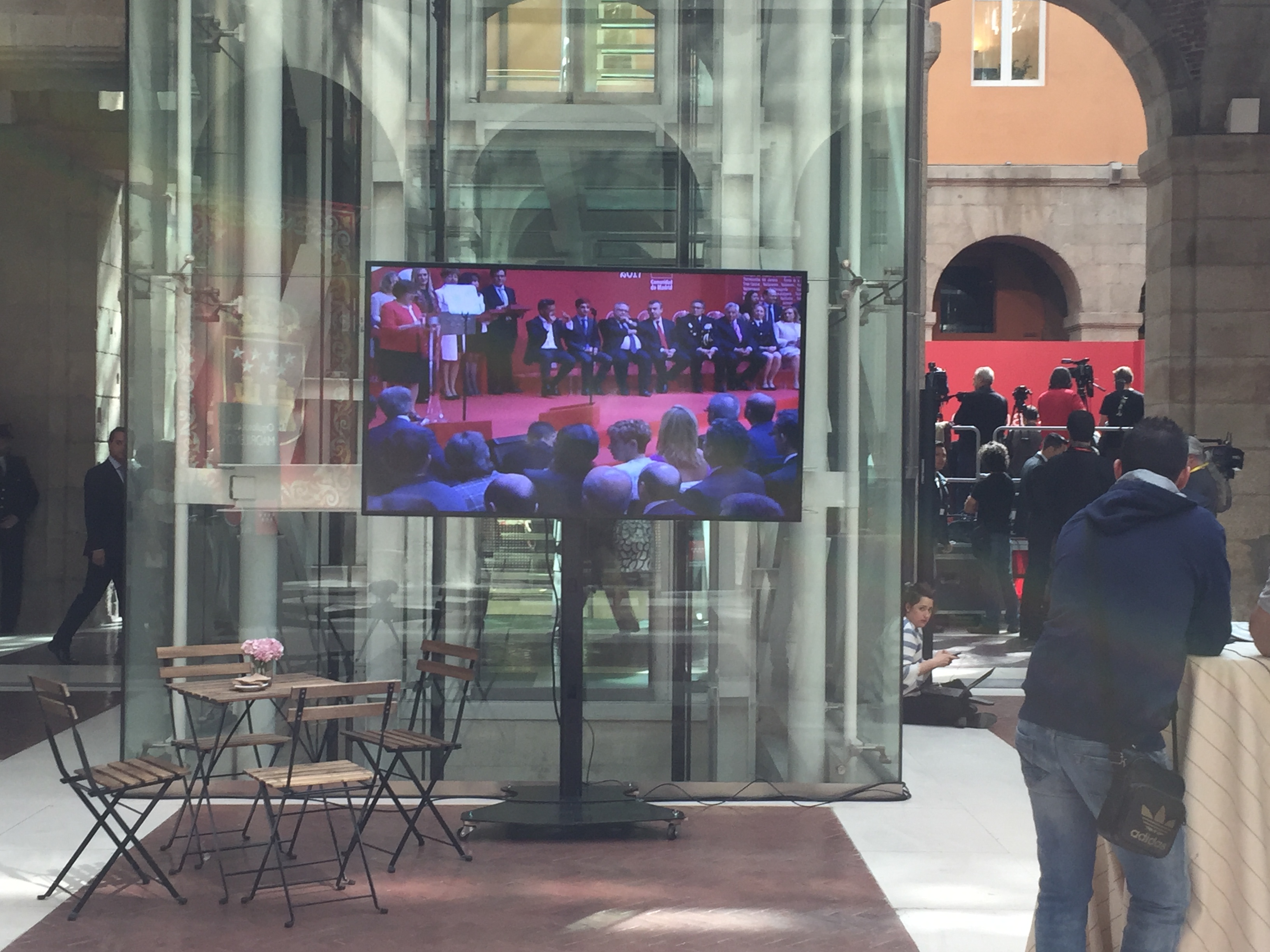 Las relaciones sociales son fundamentales y, dada la hora, la mejor manera de charlar tranquilamente con los invitados, era un aperitivo. Se celebró también en el patio interior de la Casa de Correos, al otro lado de donde se había montado el escenario. Y estuvo muy concurrido.