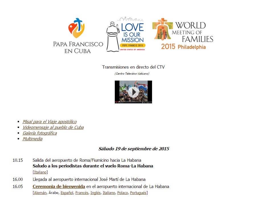 Como en otros viajes anteriores, se ha elaborado un programa que está colgado en la web del Vaticano y que contiene los enlaces a videos y fotografías.