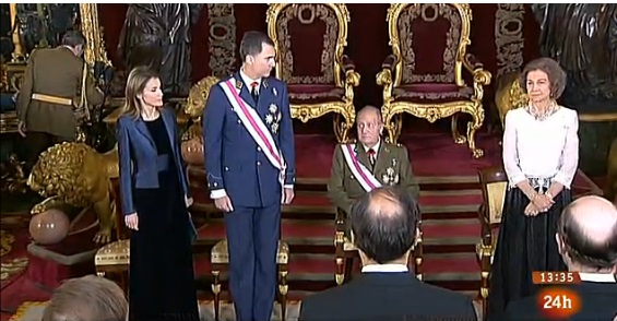 (A partir del segundo 33, se puede observar al Ayudante de Campo de SM, recogiendo las muletas y colocándolas contra la parde a la derecha de los tronos)