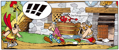 (Viñetas de los álbumes de Asterix y Cleopatra y Asterix en Los Juegos Olímpicos)