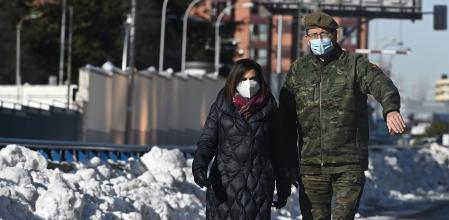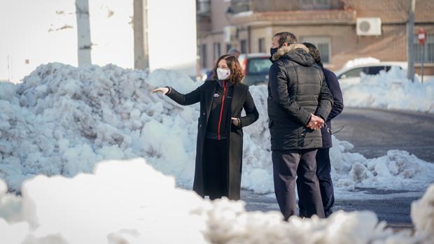 Isabel Díaz Ayuso. Abrigo de lana, largo y sin cerrar. Aunque parece que se adivina una chaqueta de forro polar debajo a juego todo en color negro. Como las botitas. Tampoco lleva ni bufanda, ni guantes. Pero ella no iba a empujar coches. Ni a palear nieve como